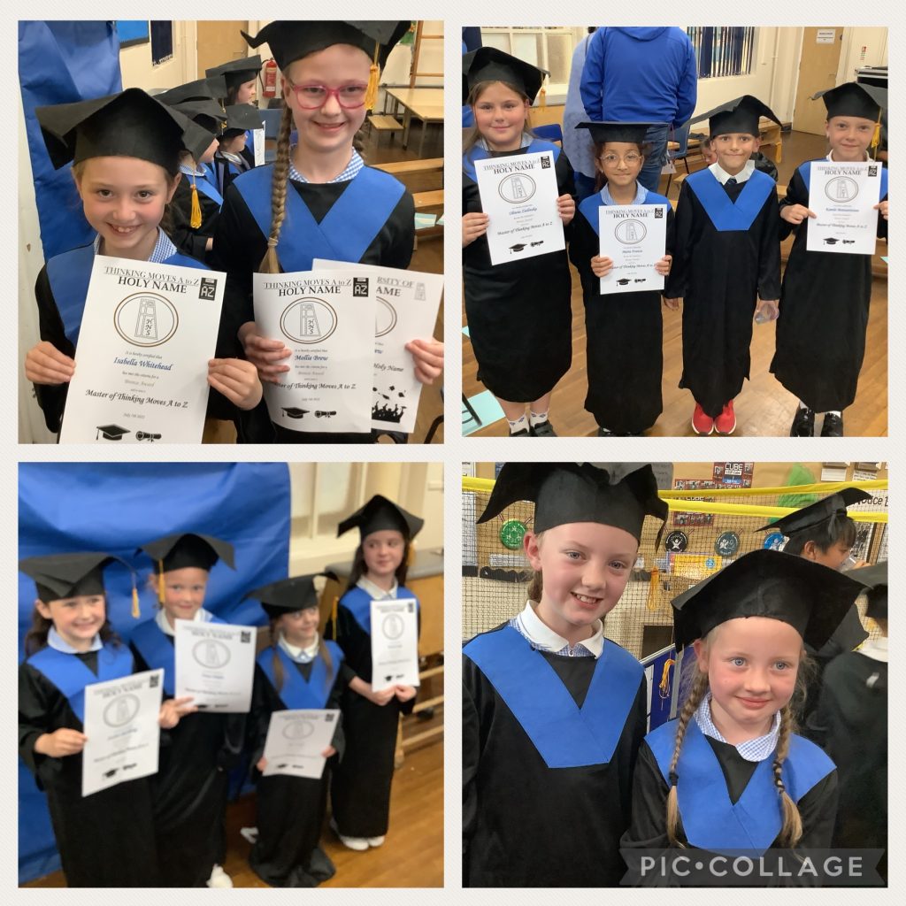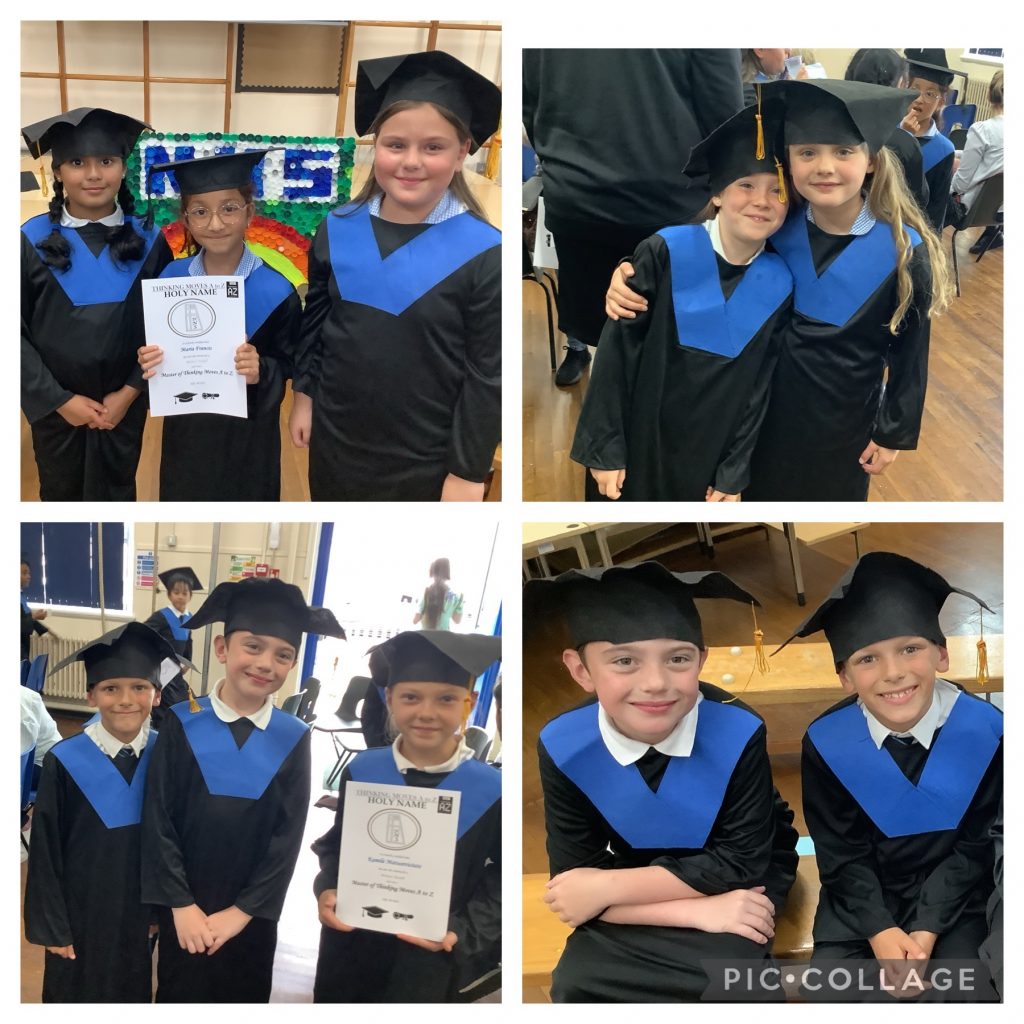 We want as many of our pupils as possible to experience our annual University of Holy Name Graduation Ceremony. Children can invite their families to the graduation where graduates wear a cap and gown, just like in a ‘grown up’ ceremony. Graduates are awarded a certificate in celebration of their resilience, their commitment to learning new skills and determination to succeed.